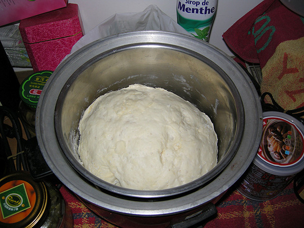 將麵團放入鍋子裡等 3 4 個鐘頭等麵團發酵( 放進鍋子不是叫你開火煮麵團喔