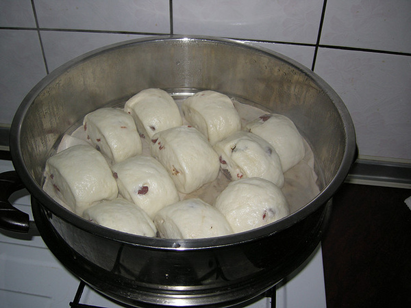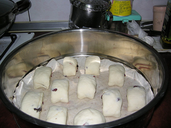 等第2次發酵( 麵團按下去會回彈 ) 接著放進蒸籠( 此時蒸籠已經水滾 ) 以大火蒸7 10分鐘左右