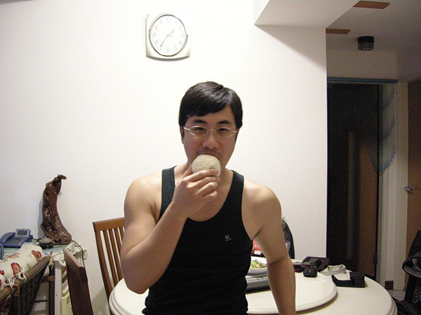 做完後自己當然要先試吃啦 其實...是 kevin 餓了